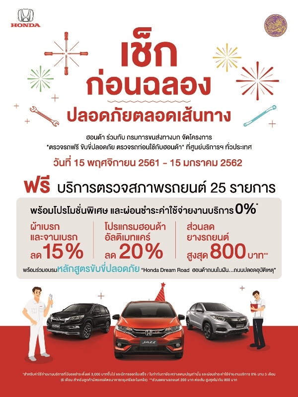 ตรวจรถฟรี ขับขี่ปลอดภัย ตรวจรถก่อนใช้กับฮอนด้า